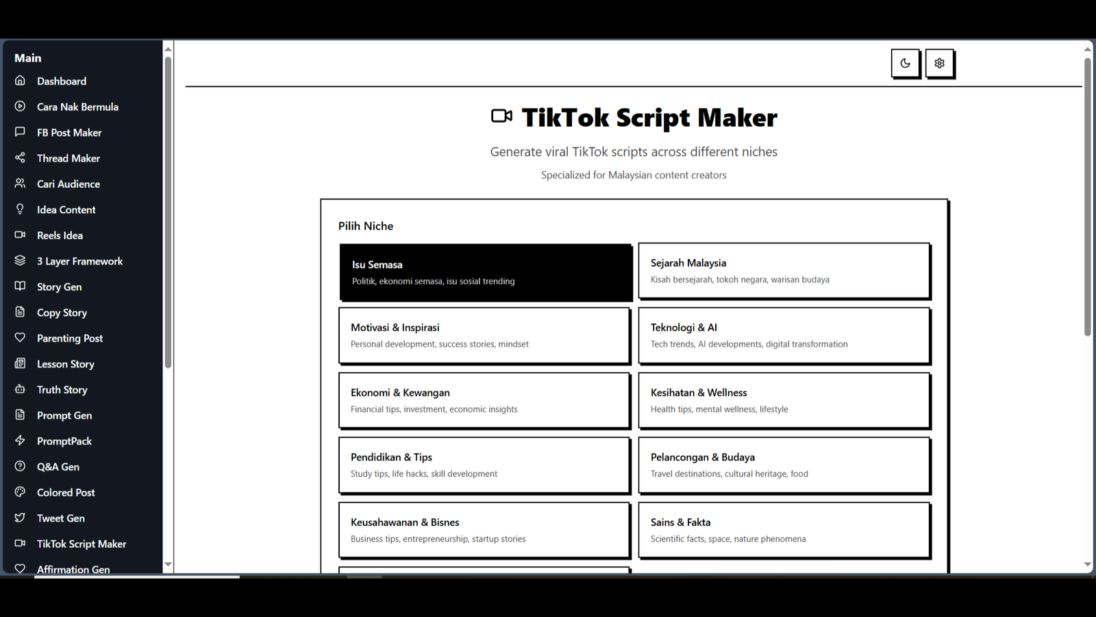 Generate viral social media content dalam Bahasa Malaysia untuk GenZ. AI yang faham slang local, trend TikTok, Facebook posts, dan X threads yang memang shareable!